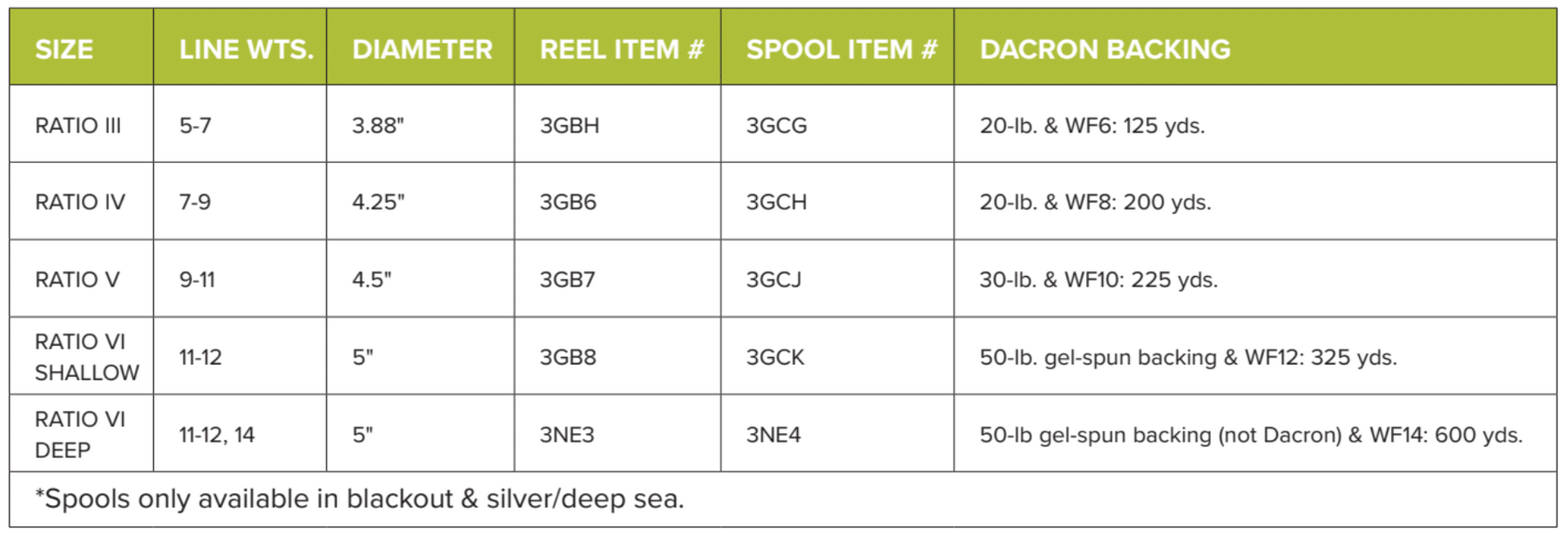 • Sizes III–VI, including deep