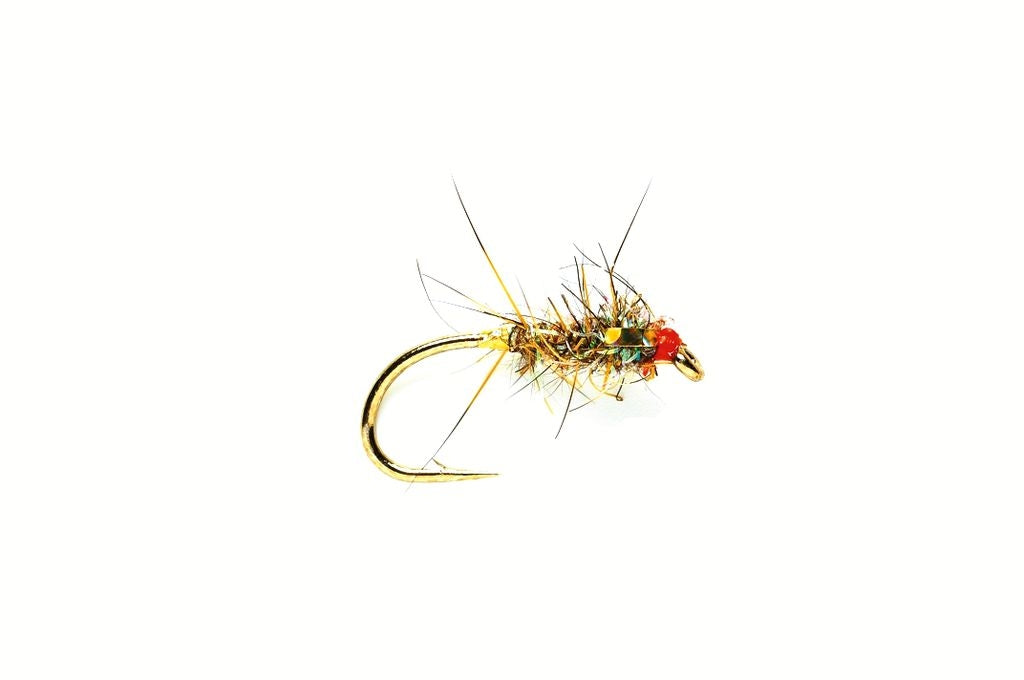 This sparse and short dressed Hares Ear pattern with its red hot spot head is an essential fly on a cast of flies on the reservoirs in summer when Trout are feeding in the surface. Will also work "on the hang" on a sinking line.