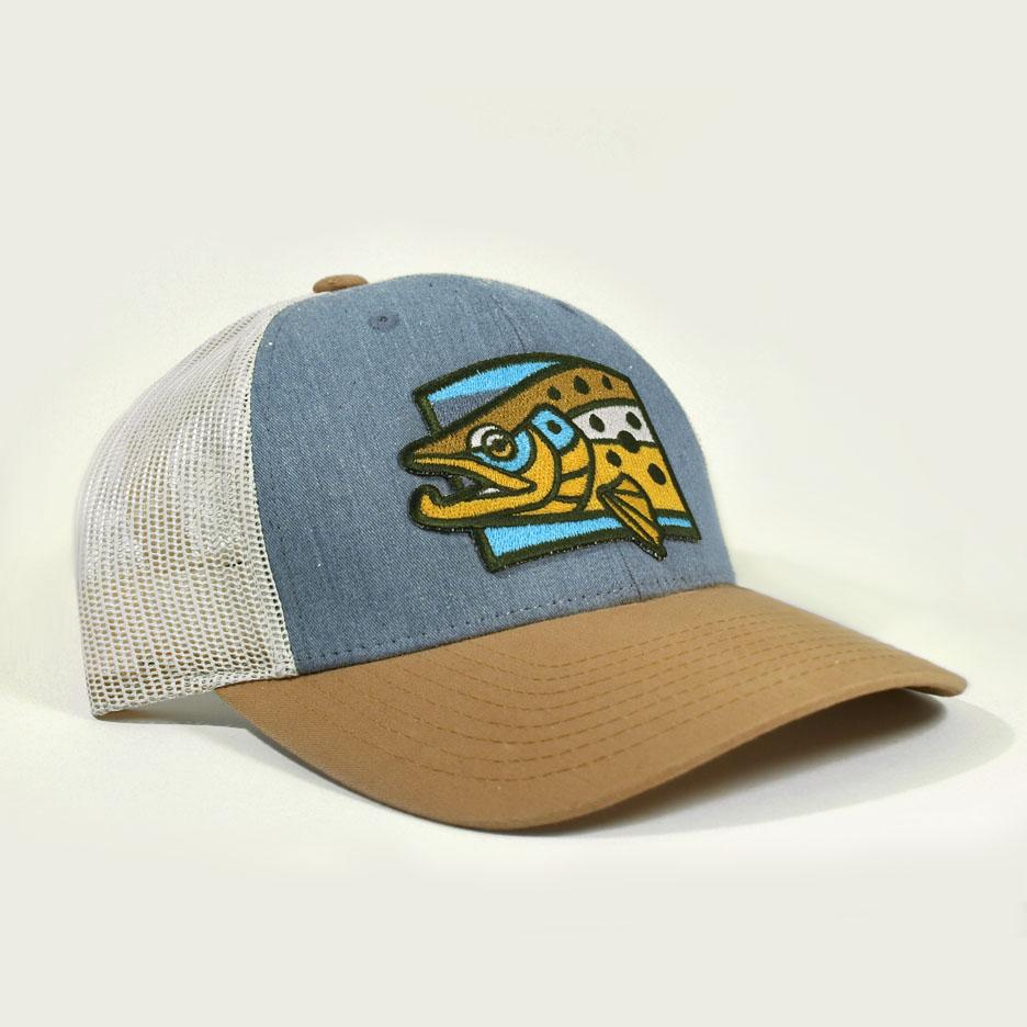 The Brown Trout Mesh Back Hat, featuring our bold and streamlined Brown Trout patch.